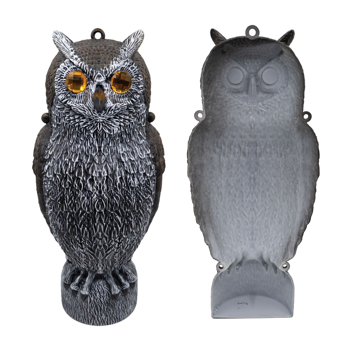 This predator decoy can be placed in gardens, yards, balconies, patios, and around buildings where birds and small animals such as rabbits, squirrels, chipmunks, voles, skunks, and opossums are a concern. Choose from three models to suit your space. For best performance, reposition the decoy periodically to avoid habituation.